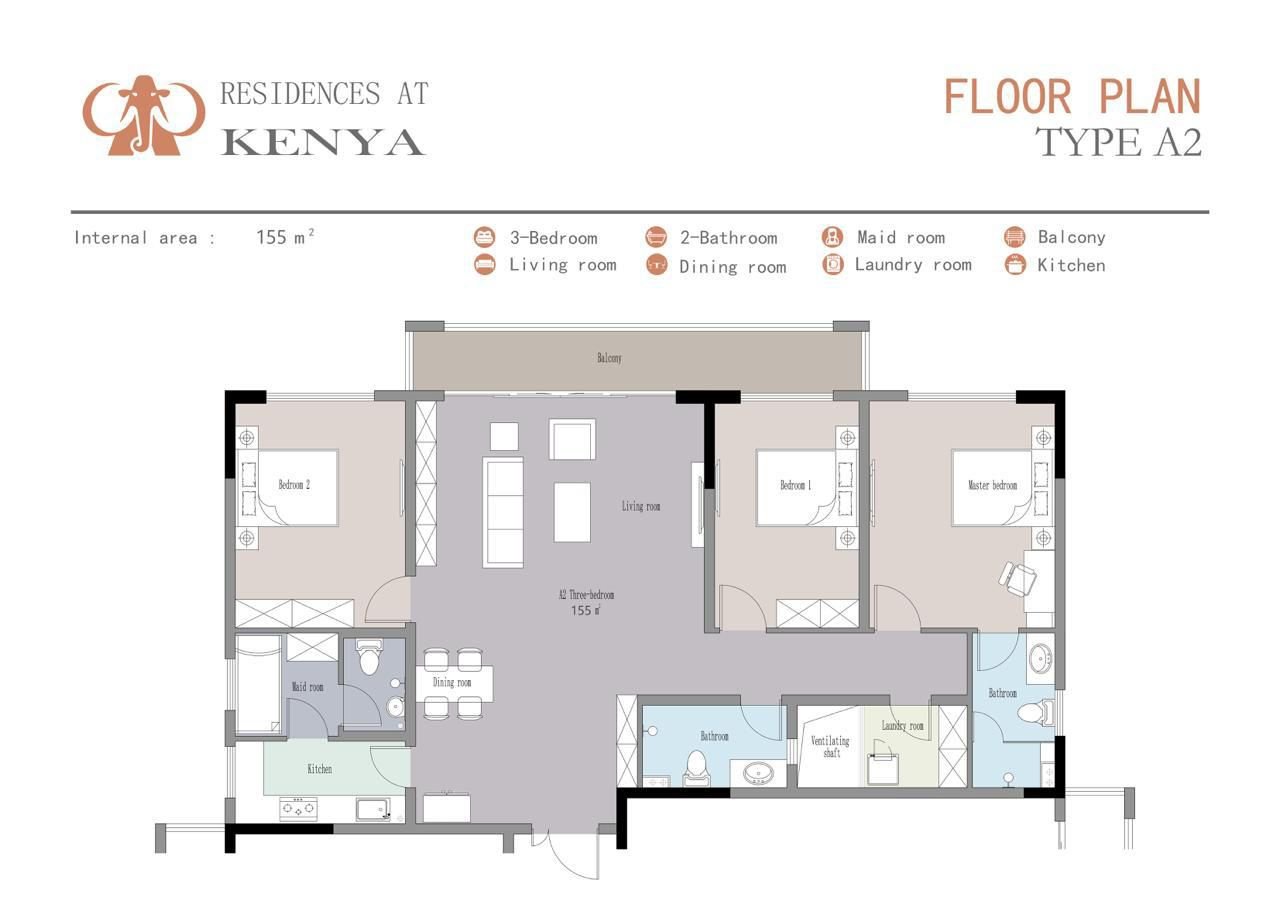 Unit Types & Prices (From): ~ 1 Bedroom (56 sqm): KES 5.5M β 6.5M ~ 1 Bedroom (65 sqm): KES 6.5M β 7.7M ~ 1 Bedroom (68 sqm): KES 7.0M β 8.0M ~ 2 Bedroom (110 sqm): KES 12.5M β 14M ~ 2 Bedroom (115 sqm): KES 13M β 15M ~ 3 Bedroom (150 sqm): KES 17.1M β 18M ~ 3 Bedroom (155 sqm): KES 17.3M β 18.3M